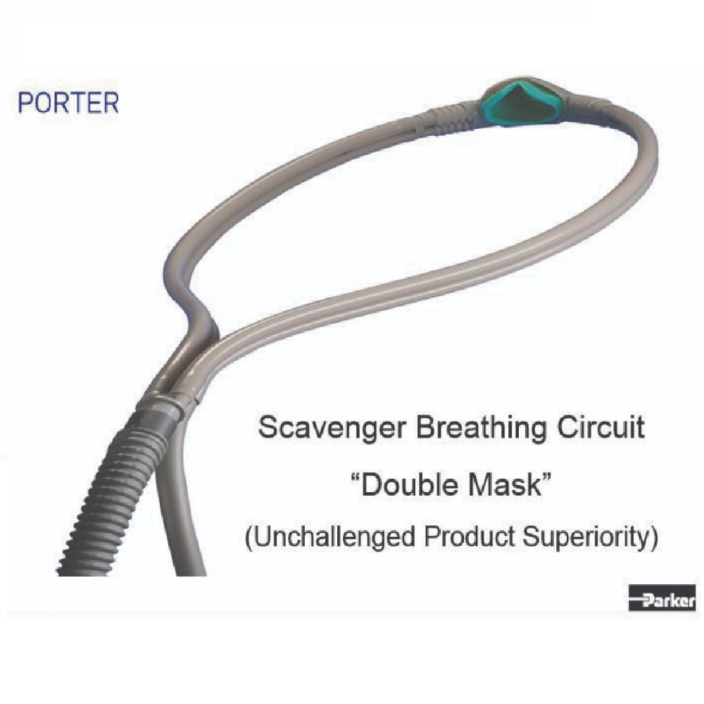 The Porter double mask nitrous scavenger breathing circuit features an outer hood and the option for